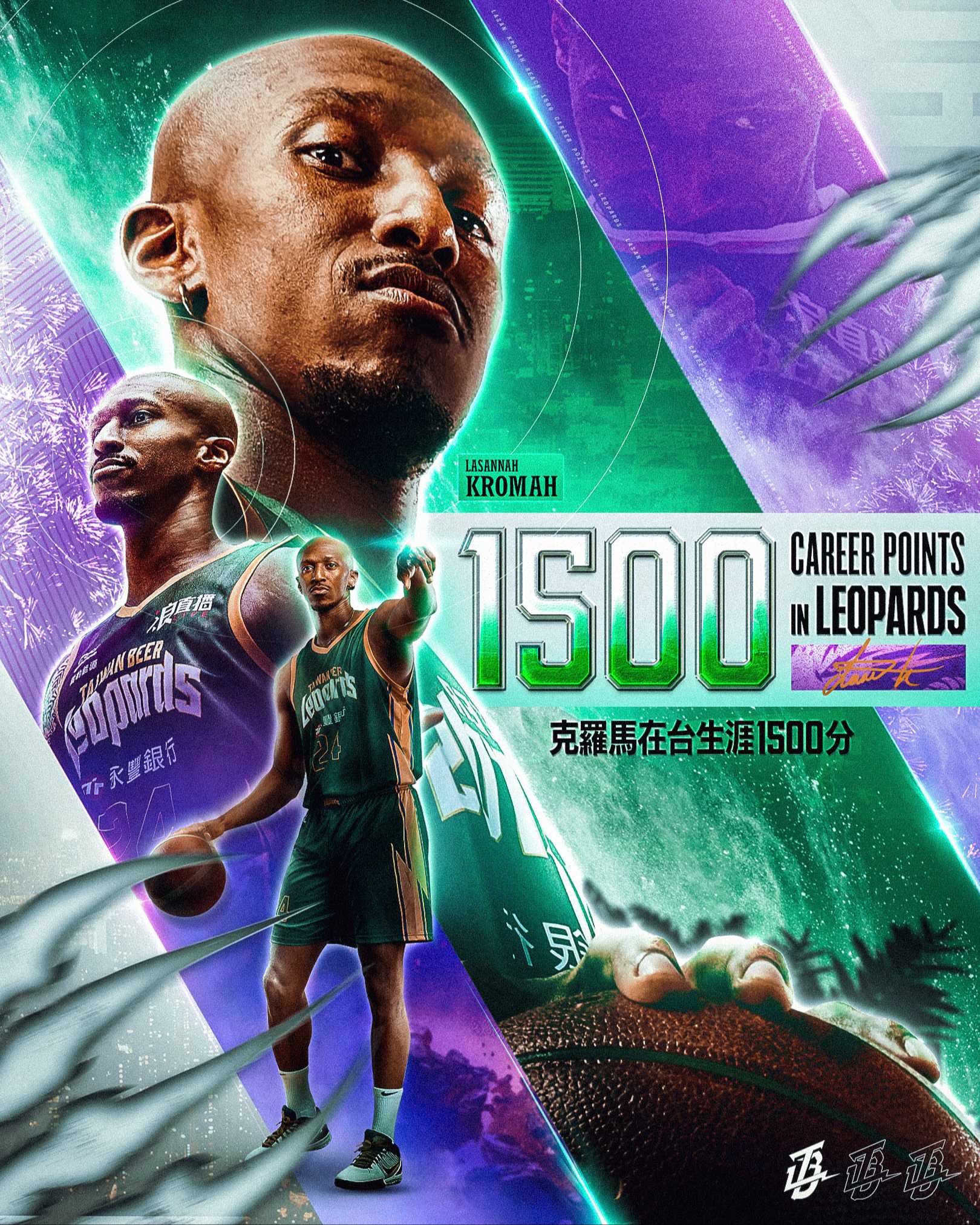 「最強奶爸」克羅馬自2023年加盟雲豹後就扛起球隊進攻要角,前兩季共出賽場例行賽就累積1387分,賽前生涯得分累積達1481分,此戰第三節剛進行近4分鐘,他就靠著招牌中距離跳投拿下生涯例行賽第1500分,且全場共攻下29分、9籃板以及9次助攻。