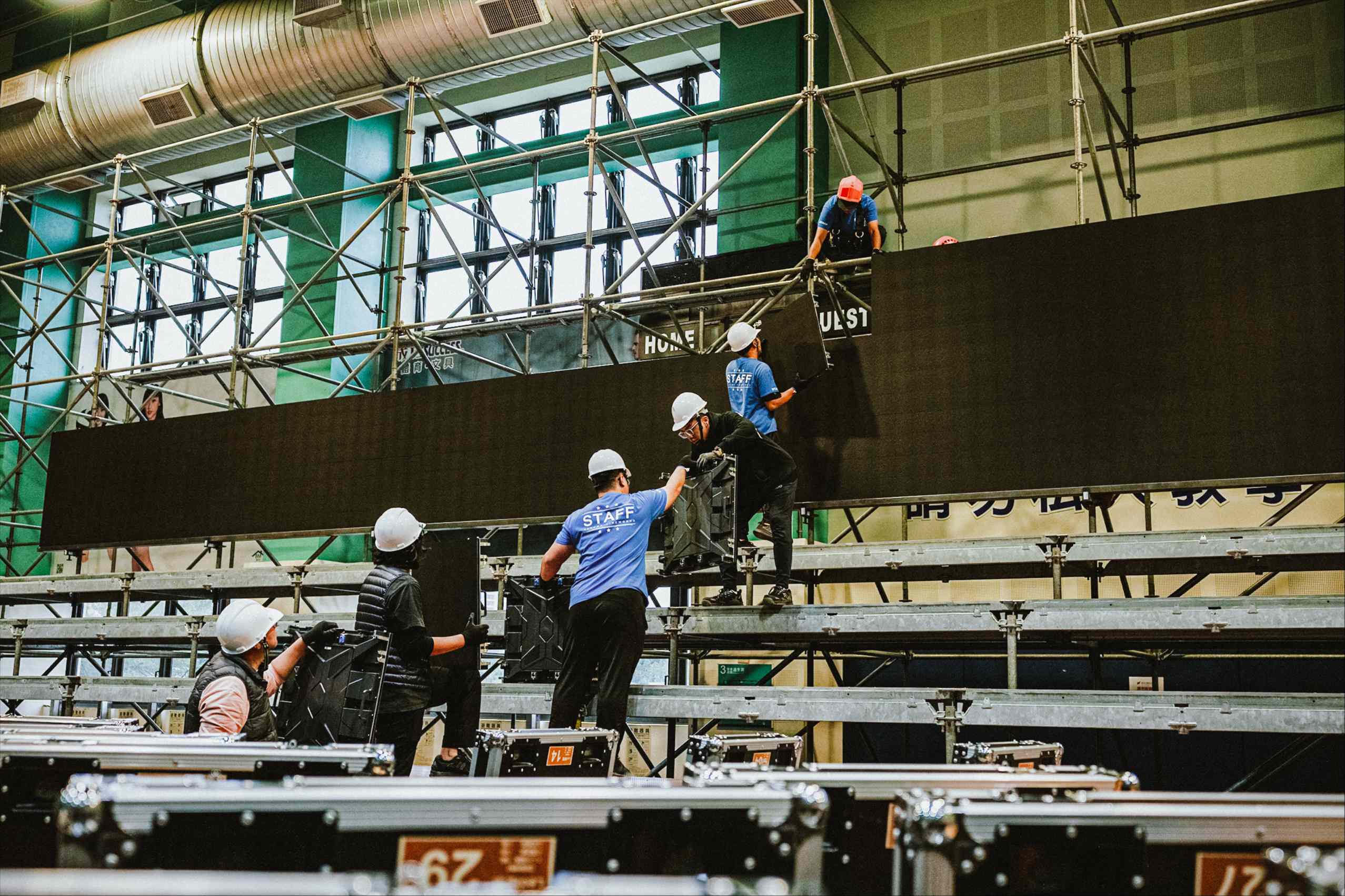 球團於昨(7日)清晨七點正式展開搬遷作業,在攝氏約十度的低溫下全面動員進場施工,現場出動一輛80噸大型吊車、三台17噸大卡車、五台3.5噸貨車與四台鷗翼式大貨車,同步進行燈光、音響、LED螢幕、球場地板與籃框等重裝器材的吊掛與運送,整體工程規模浩大,現場投入人力超過百人,全力確保各項設備能於中壢國民運動中心順利完成建置,球團也特別感謝中壢國民運動中心、康福搬家以及各協力單位的鼎力相助,讓這次難度極高的主場搬遷工程得以在緊湊時程中順利完成。