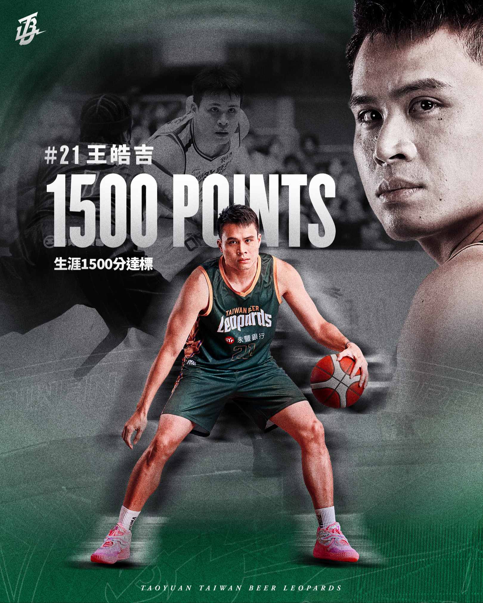 王皓吉自2013年起加入SBL台灣啤酒隊展開職業生涯,直到2024-25賽季加入台啤雲豹,前12個球季共出賽285場例行賽共累積1418分,25-26球季接下雲豹隊長角色,在今天賽前得分累積已達1498分,比賽開打後首節進行不到2分鐘時,他接獲莊博元助攻,成功投進底線中距離跳投,完成下生涯例行賽第1500分,此戰全場攻下8分。