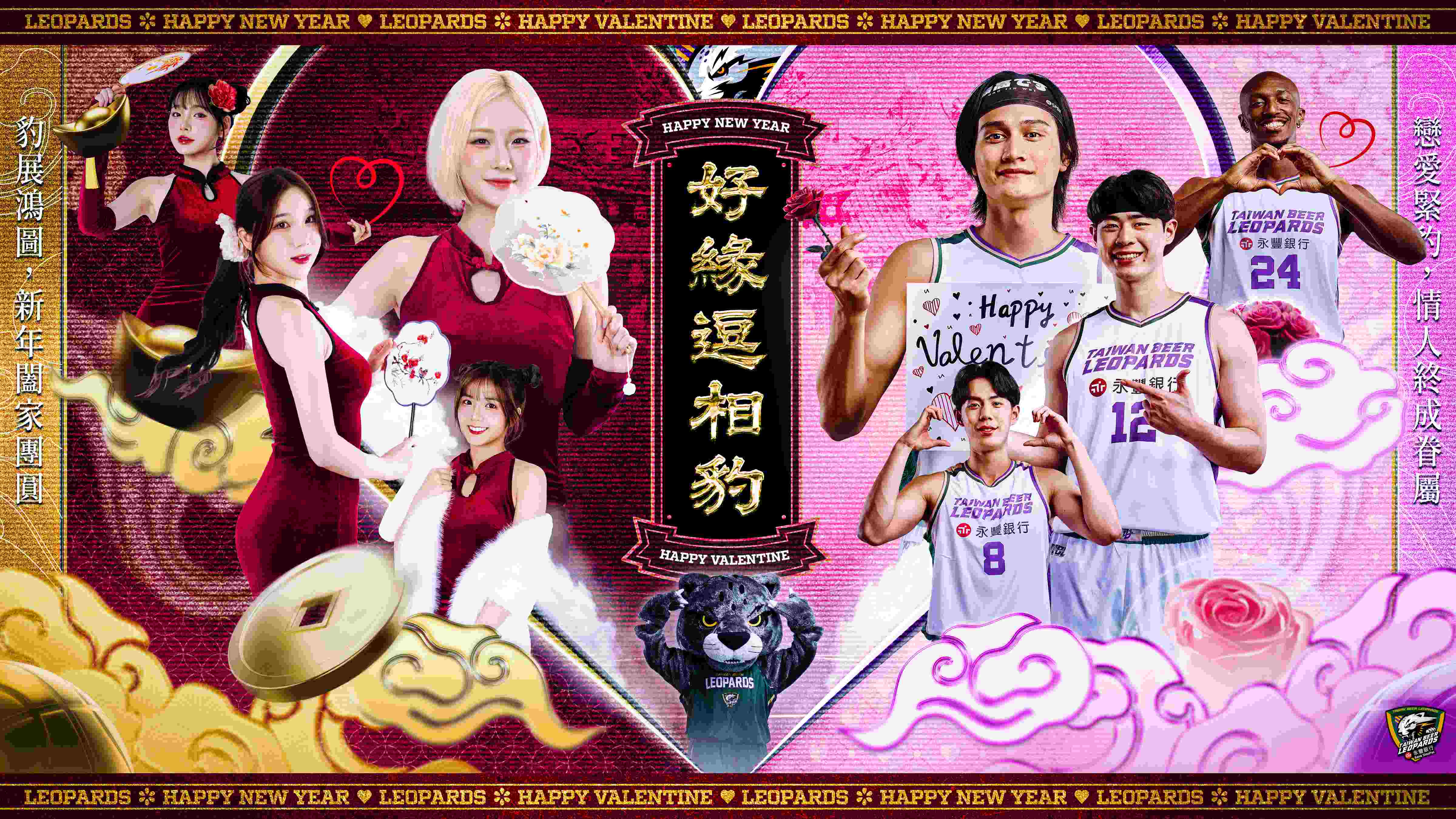 桃園台啤永豐雲豹本週末2月14日(六)及2月15日(日)將於中壢國民運動中心,迎戰聯盟前段班勁旅福爾摩沙夢想家與新北中信特攻,週末適逢西洋情人節與農曆小年夜,球團特別推出「好緣逗相豹」主題週,將中壢主場打造為充滿粉紅泡泡與年節喜氣的雙重慶典,號召球迷進場與「浪LIVE電豹女」共度浪漫與年味兼具的週末時光。